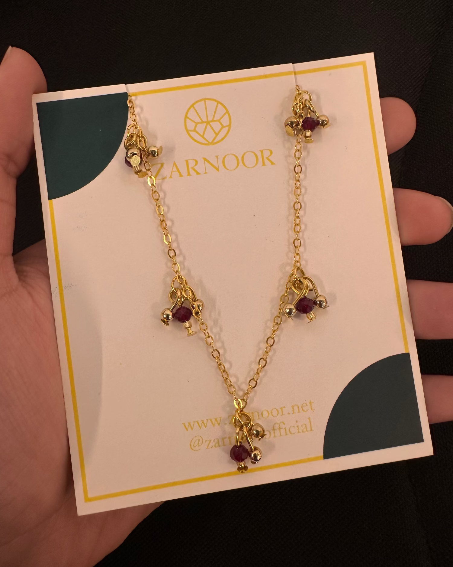 Paired with a delicate golden chain anklet adorned with maroon and golden beads, this set adds a touch of festive charm and sophistication to your look.