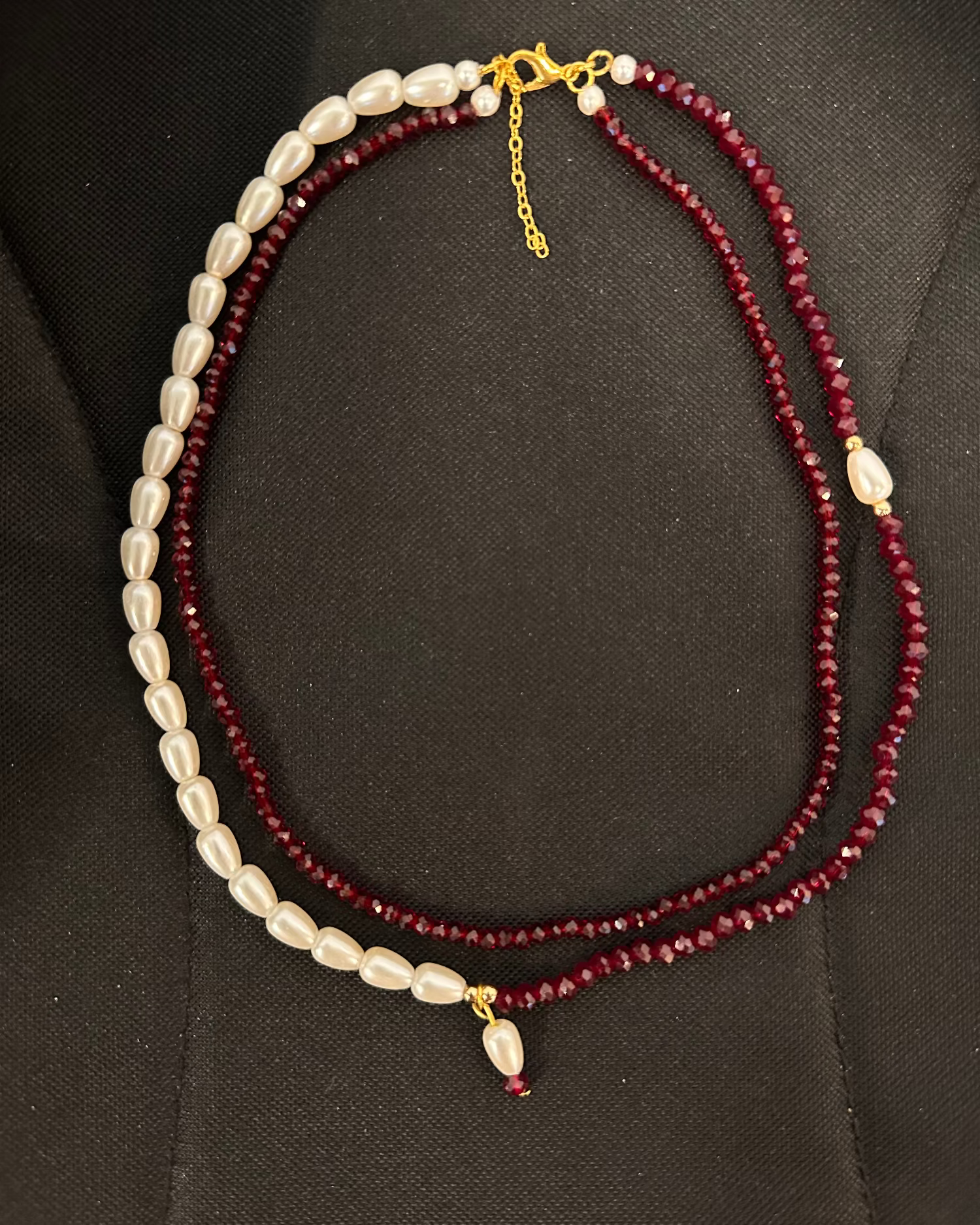 Unveil your royal side with the Royal Ember Set a striking blend of deep maroon cut beads and luminous white pearls, designed to capture elegance in every detail. The necklace features a graceful combination of small and slightly larger maroon beads, beautifully balanced with classic white pearls for a timeless yet bold statement.